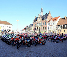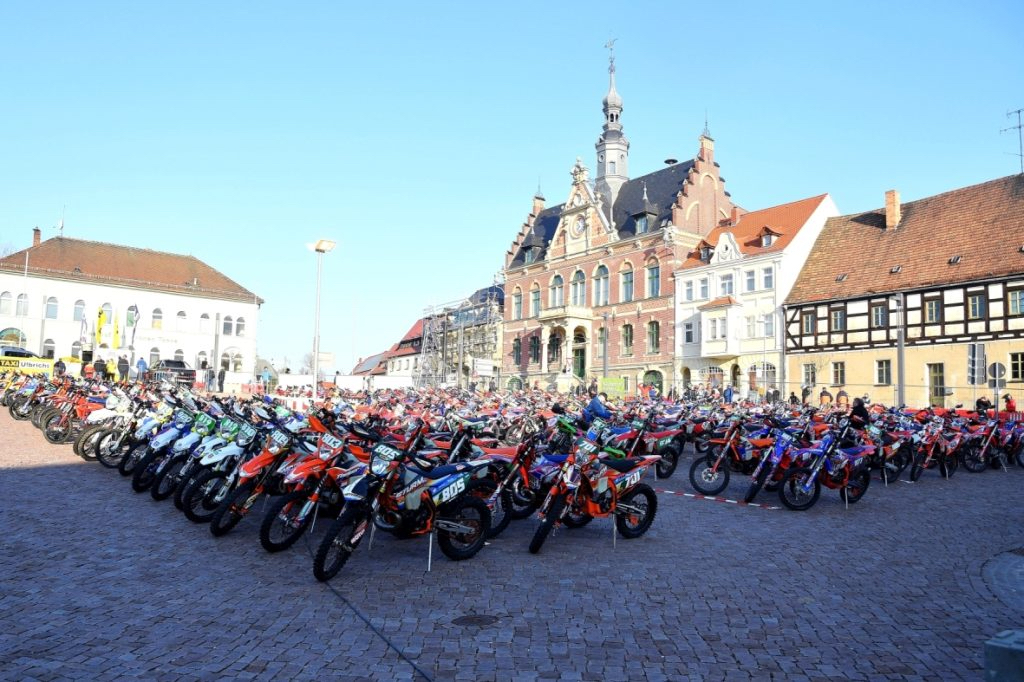 Der Start der ersten Fahrergruppe erfolgt 8:00 Uhr auf dem Dahlener Markt, wo sich auch das Rennbüro, am Samstagnachmittag die Technische Abnahme der Wettbewerbsmotorräder sowie der für selbige imposante Parc Fermé befinden.