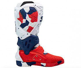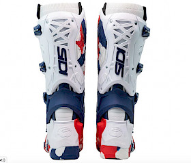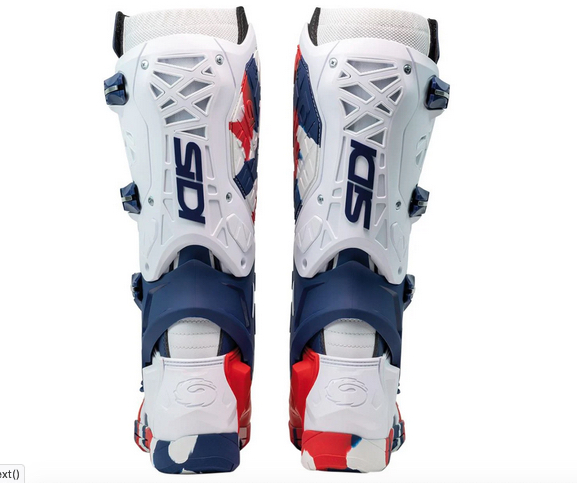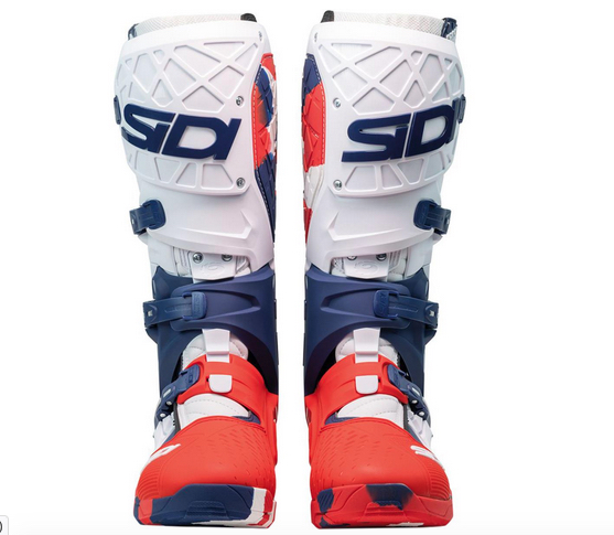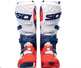 Optisch setzt der Stiefel auf ein klares, professionelles Design. Erhältlich ist er in vier Farbvarianten: klassisches Schwarz, Weiß, eine patriotische Rot-Weiß-Blau-Kombination sowie ein auffälliges „Messy-Cyan“ oder „Messy-Coral“ Design. Aktuell gibt es noch keine Enduro-Sohle, doch Sidi deutete bereits an, dass eine solche Option in Zukunft verfügbar sein könnte.
