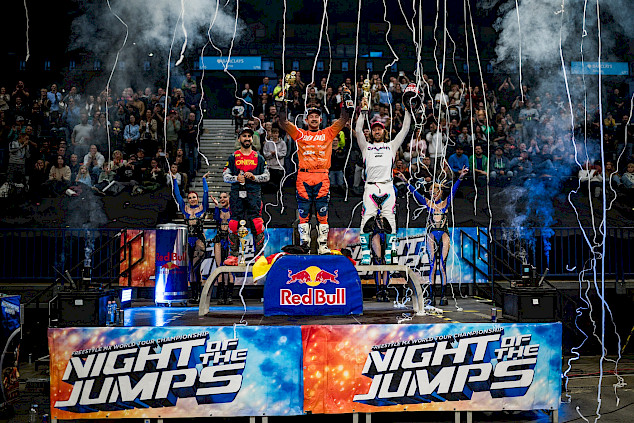 Die NIGHT of the JUMPs feierte am vergangenen Samstag ein spektakuläres Comeback in Hamburg. Nach sechs Jahren kehrte die größte Freestyle-Motocross-Serie der Welt in die Hansestadt zurück. 20 der weltbesten Actionsportler flogen durch die Barclays Arena, um die Sieger des Deutschland-Grand-Prix im FMX sowie im MTB/BMX zu ermitteln.