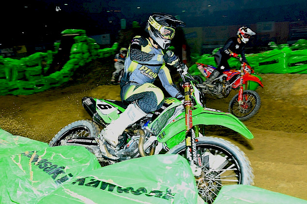Der erst 19-Jährige Leum Oelhoff kommt aus Cairo/Georgia und ist der Sohn des in Deutschland bereits bestens bekannten Joe Oehlhoff. Dieser trat zwischen 2004 und 2009 des Öfteren in deutschen Hallen an, davon 2007 und 2008 für das Team Kawasaki Pfeil. Damit schließt sich gewissermaßen ein Kreis. Sohn Leum hat vor Kurzem in seinem Heimatland einen Vertrag für das Partzilla Blaster PRMX Team als Teamkollege von Hamden Hudson für die kommenden Arenacross- und SMX Next- Serien unterschrieben und rollt sich nun in Stuttgart ebenfalls schon mal in Kawa-Grün ein.