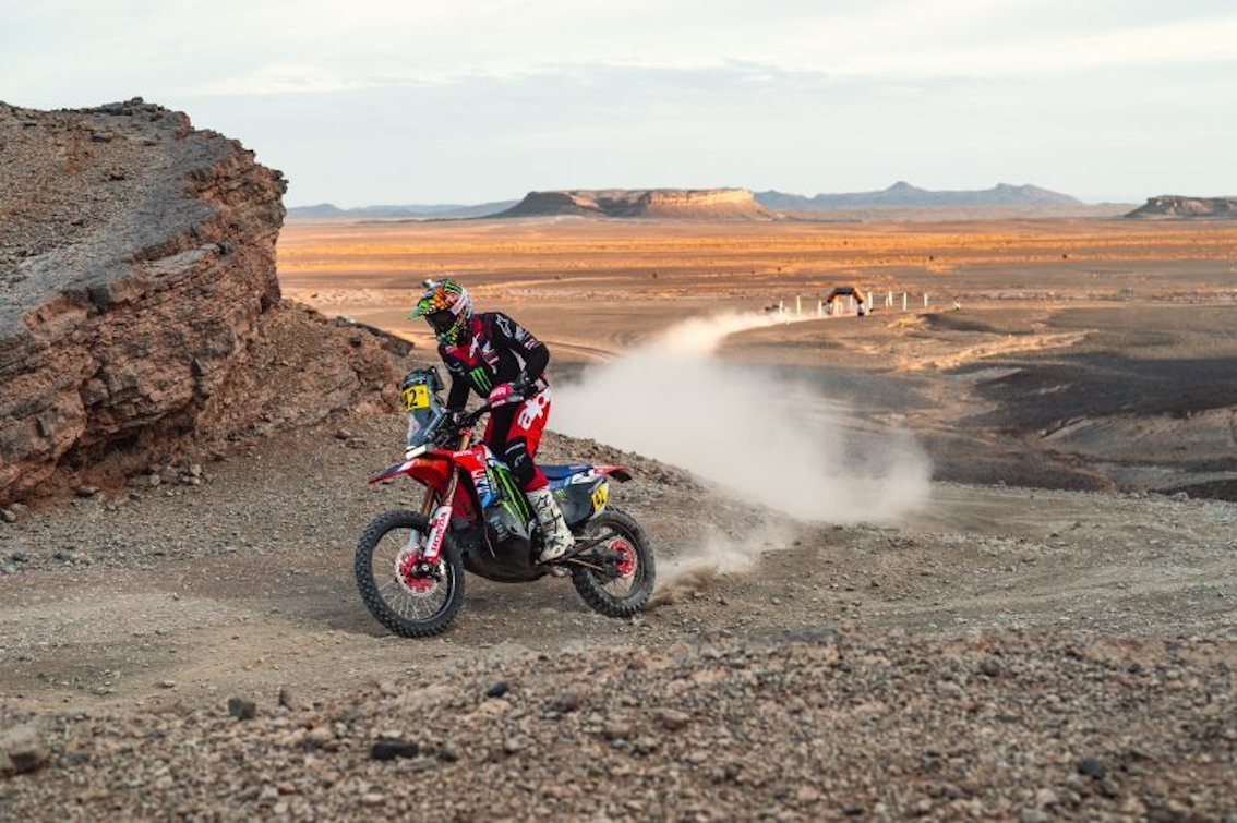 Schareina, der an der Spitze der Gesamtwertung stand, hatte nur noch 216 Kilometer vor seinem ersten Sieg bei der Rallye du Maroc, als er und seine Teamkollegen von Monster Energy Honda HRC sich für die fünfte und letzte Etappe der diesjährigen Veranstaltung aufstellten.