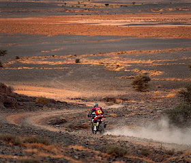 Die Strecke von Erfoud nach Merzouga versprach mit schnellen, felsigen Schluchten und vier Dünenabschnitten, von denen die letzten 12 Kilometer den Abschluss der Etappe bildeten, kein leichtes Ende. Um Fehler zu vermeiden, war daher eine präzise Navigation entscheidend.
