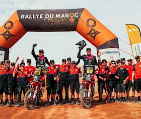 Ruben Faria - General Manager: „Wir haben das Ende der Rallye du Maroc erreicht, das letzte Rennen des Jahres und es war eine sehr gute Rallye für uns. Uns hat ein Sieg gefehlt und dieser mit Tosha kommt genau zur richtigen Zeit. Er ist ein hervorragendes Rennen gefahren und hat die Etappen mit viel Selbstvertrauen und guter Navigation eröffnet. Das Motorrad hat während der gesamten Rallye perfekt funktioniert und wir sind sehr glücklich über diesen Sieg. Ricky wurde Dritter in der Gesamtwertung. Er verlor am ersten Tag wichtige Zeit, fuhr dann aber für den Rest der Woche sehr stark. Adrien kam nach seinem schweren Sturz in Portugal mit einigen Zweifeln nach Marokko, aber er verbesserte sich jeden Tag und wurde Vierter, ein großartiges Ergebnis, das sein Selbstvertrauen für die Dakar stärkt. Es war bedauerlich, dass Skyler nach einem Sturz aufgeben musste, denn auch er fuhr gut. Wir sind alle sehr motiviert, das neue Jahr bestmöglich zu beginnen und dieser Sieg gibt uns die Energie und das Selbstvertrauen, weiter nach vorne zu schauen. Vielen Dank an das gesamte Team für die unglaubliche Arbeit im letzten Monat mit zwei aufeinanderfolgenden Rallyes. Es war nicht einfach, aber die Mühe hat sich wirklich gelohnt.“