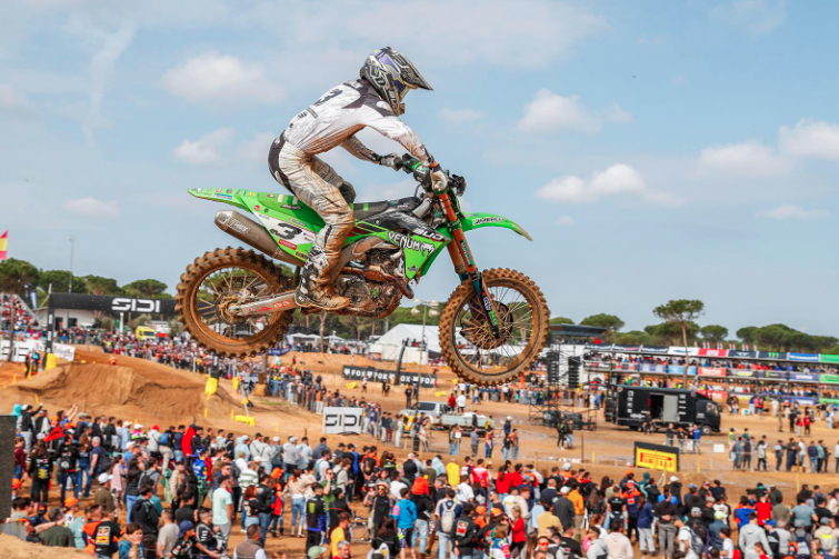 Francisco Garcia vom Venum Bud Racing Kawasaki-Team legte einen perfekten Start in die EMX250-Europameisterschaft hin und sicherte sich mit einem Doppelsieg (1-1) am Wochenende in Almonte (Andalusien) die rote Startnummer. Teamkollege Jake Cannon komplettierte den Doppelsieg für Bud Kawasaki, wodurch Kawasaki sich in der Herstellerwertung sofort einen Vorsprung von zwölf Punkten herausfuhr.
