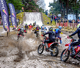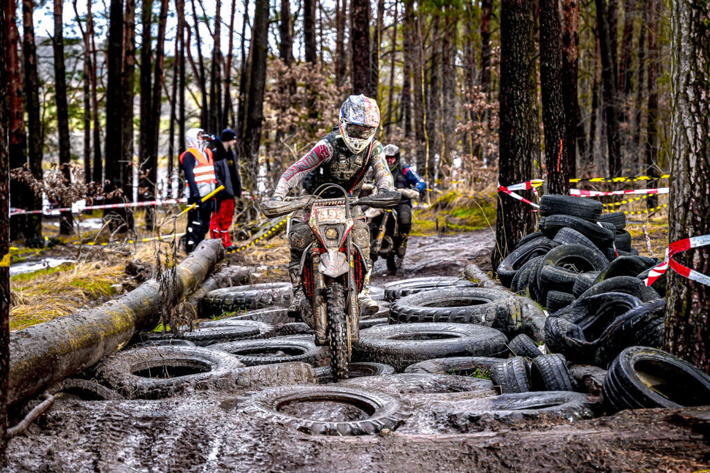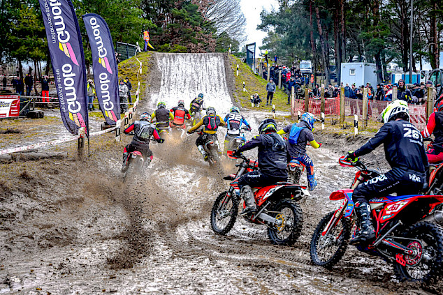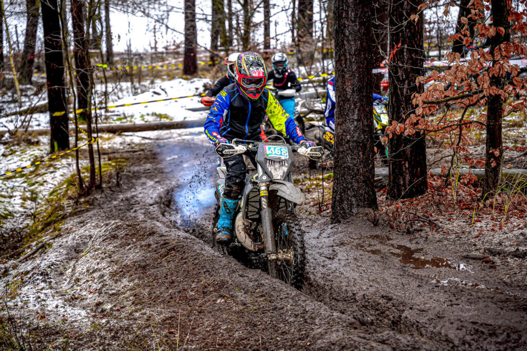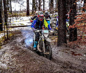 Der zweite von insgesamt drei Läufen des ROCK Oil Enduro Wintercup führte das Fahrerfeld nach Reetz – und einmal mehr spielte das Wetter eine entscheidende Rolle. Nach einsetzendem Tauwetter unter der Woche hatte erneuter Frost am Donnerstag und Freitag zahlreiche Wasserstellen wieder gefrieren lassen. In der Nacht vor dem Rennen setzte zusätzlich Regen ein, der die Strecke erneut antaute und stellenweise tief aufweichte. Bei rund acht Grad am Renntag entwickelte sich so eine anspruchsvolle Mischung aus rutschigem Untergrund, schmierigen Auffahrten, ausgefahrenen Spurrinnen und zunehmend kräftezehrenden Schlammfeldern. Die schwierigen Bedingungen sorgten bereits im Vorfeld für einige Absagen – und verlangten den verbliebenen Startern alles ab.