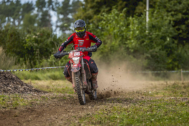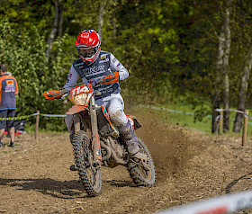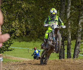 Generell fühlt sich Matyas in der Deutschen Enduro Meisterschaft sehr wohl, wie er verriet: „Eigentlich wäre dieses Wochenende auch ein Lauf bei uns in Tschechien für mich gewesen, doch hier in Deutschland ist einfach alles viel besser organisiert und vorbereitet. Das komplette Sherco-Team unterstützt mich so großartig. Ich kann mich voll auf alle Betreuer verlassen. Daheim in Tschechien bin ich meist mit meinem Dad alleine und muss alles selbst managen. Hier ist alles deutlich entspannter für uns. Auch die heutige Etappe war Weltklasse – eine schöne Runde mit großartigen Aussichten und spaßigen Stellen. Straße sind wir heute gar nicht gefahren, nicht so wie letzte Woche in Italien bei der ISDE. So muss Enduro sein! Ich freue mich schon jetzt auf den nächsten Lauf in Tucheim.“