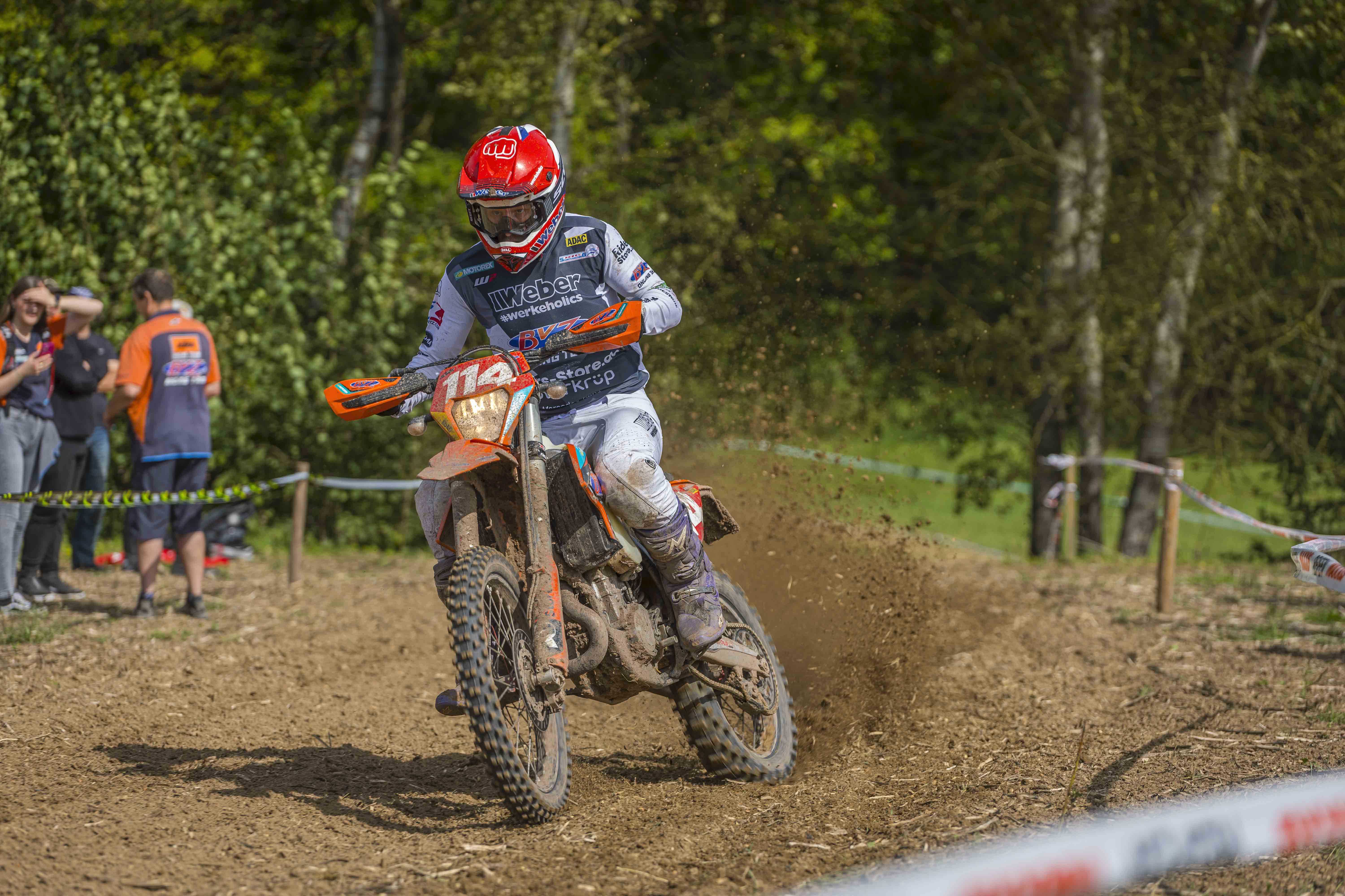 Und tatsächlich: Sein Plan ging auf, er gewann die Klasse. Für den Führenden in der Meisterschaft, Eddie Hübner, war das aber kein Problem – mit Rang zwei baute er seinen Vorsprung sogar weiter aus. Auf Platz drei landete Yanik Spachmüller, der nach langer Verletzungspause bei den Sixdays und in Waldkappel wieder mit der 350er GasGas antrat: „Das ist fürs Cross-Country nicht ganz so anstrengend“, hoffte der ehemalige E1-Meister.