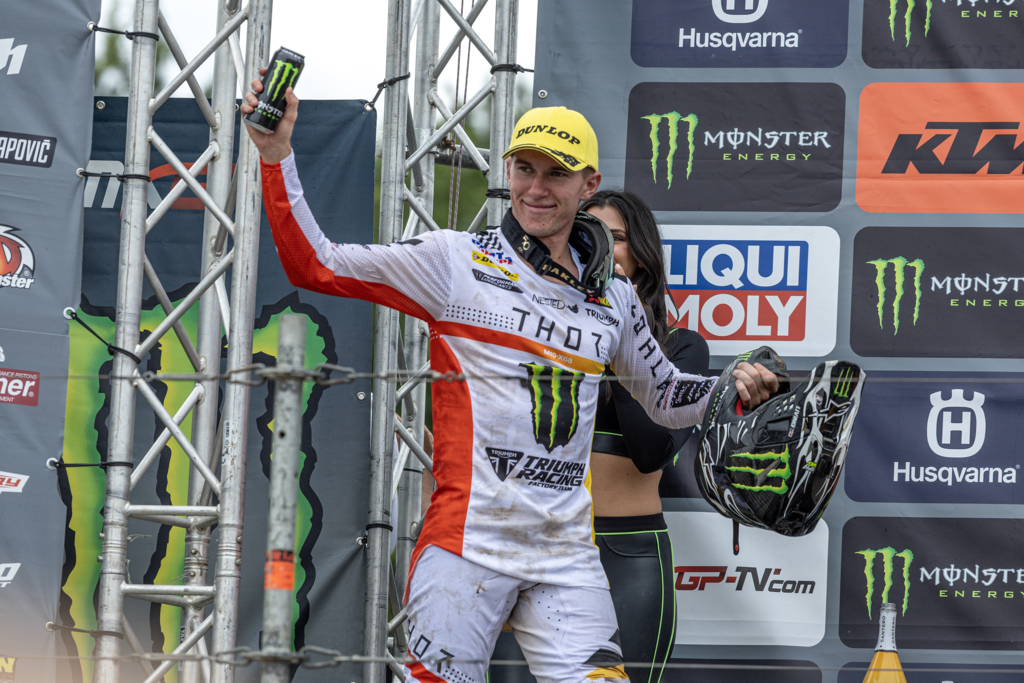 Camden McLellan von Monster Energy Triumph Factory Racing hat sich in Runde 15 der MX2-Weltmeisterschaft im belgischen Lommel den zweiten Gesamtrang gesichert. Der TF 250-X-Fahrer zeigte sich das ganze Wochenende über in beeindruckender Form, sicherte sich den dritten Platz im Qualifikationsrennen und belegte anschließend die Plätze zwei und drei in den Grand-Prix-Rennen. Auch Guillem Farres war im Einsatz: Der Spanier belegte den neunten Gesamtrang.